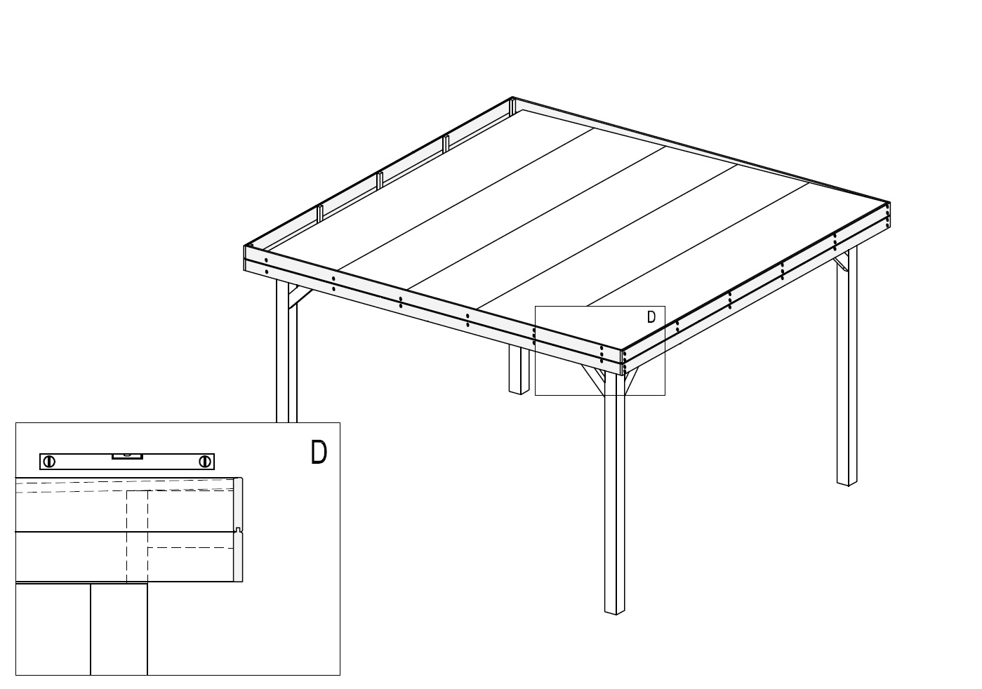 • Diversi padiglioni hanno le pareti e gli elementi del tetto pre-installati, che facilita e accelera significativamente l'installazione della casetta.