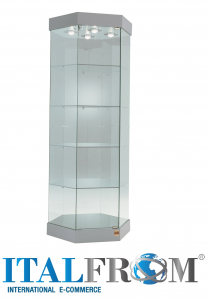 Cristallo temperato vetrina diametro cm 74 vetrina h.188 Specifiche tecniche peso 100 Kg dimensioni ø 74x188 cm colli 2 (m³: 0,30)