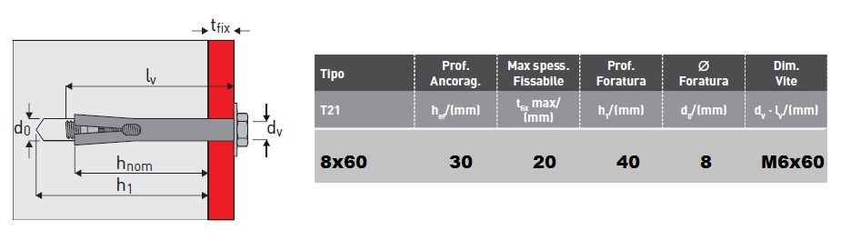 Tassello in acciaio zincato, completo di vite testa esagonale.
