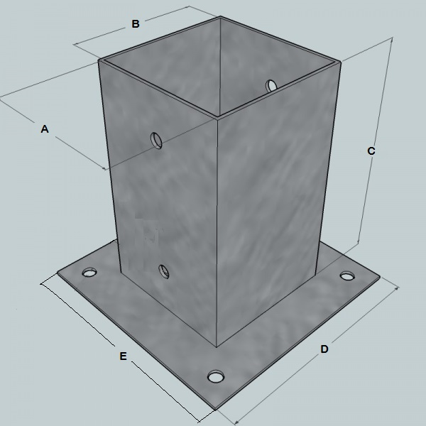 Porta palo in acciaio grezzo con superficie zincata a fuoco a tassellare per pali in legno quadri .
