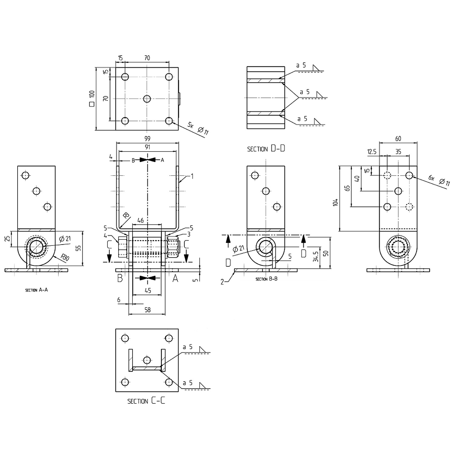4 fori Ø 11mm.