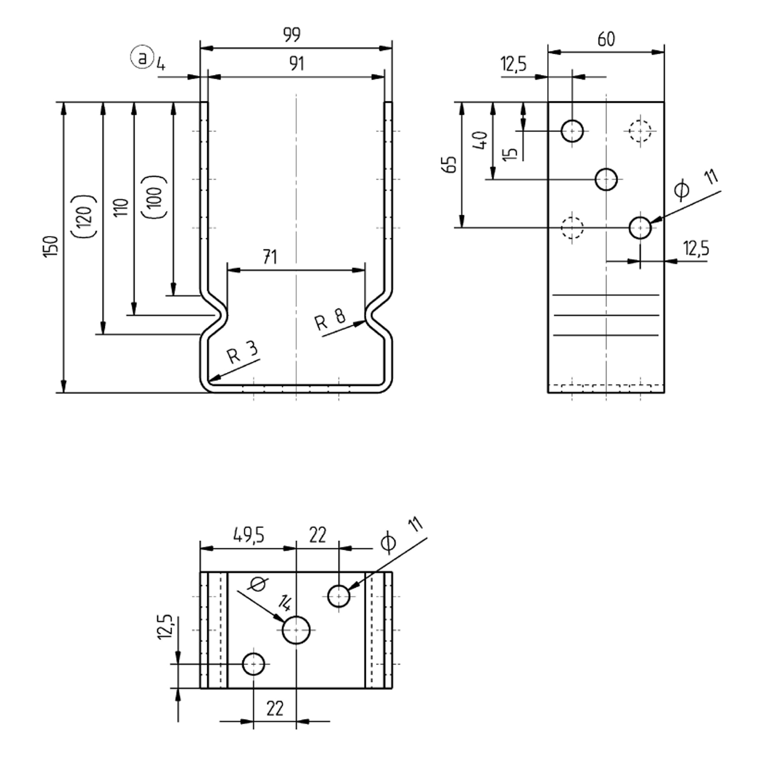 Staffa porta palo con appoggio laterale per il palo per protezione strutturale in acciaio grezzo con superficie zincata a fuoco a tassellare per pali in legno quadri .