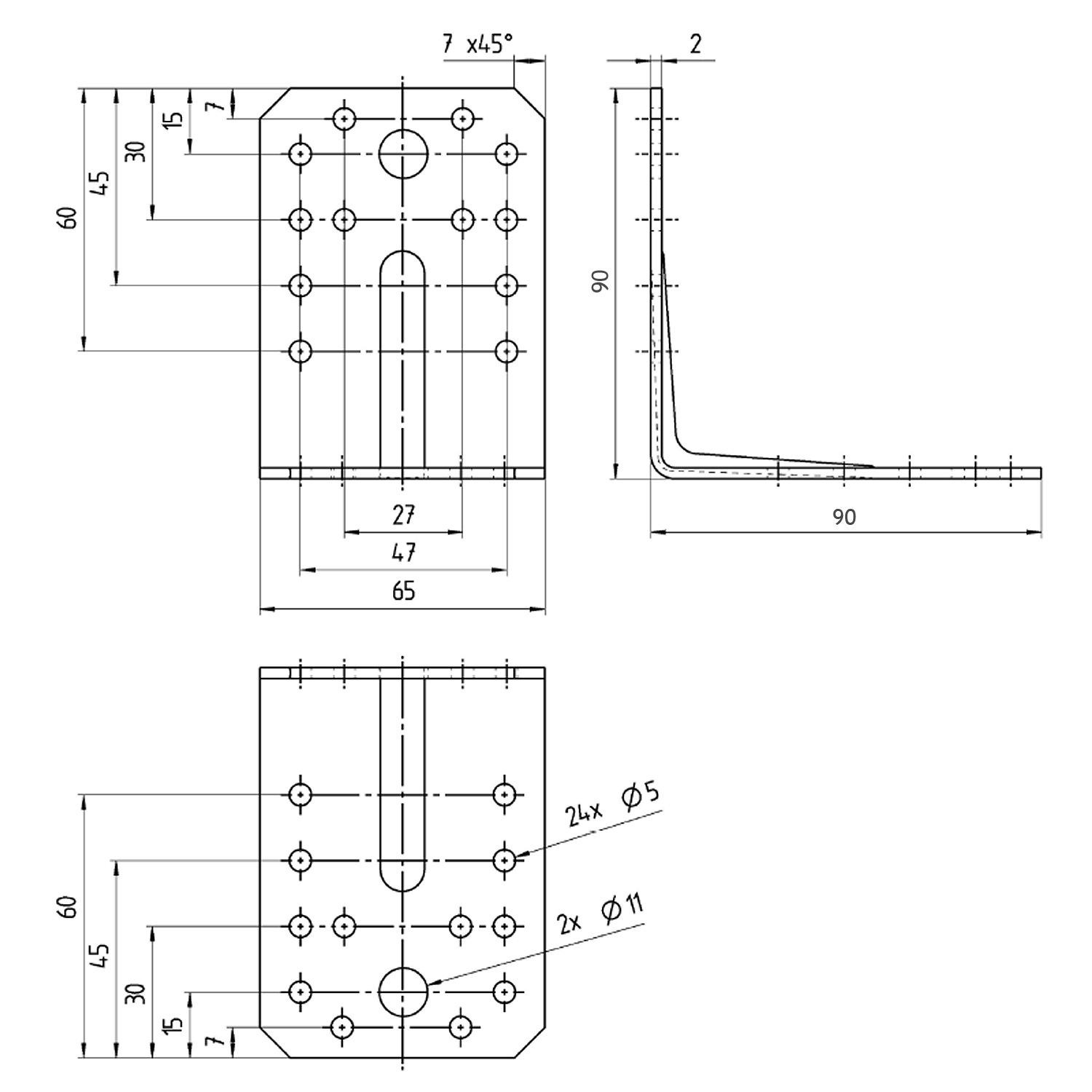 Staffa di giunzione angolare con nervatura di rinforzo per pali quadri ad L in acciaio grezzo galvanizzata sendzimir. Dimensioni disponibili 70x70x55; 90x90x65; 105x105x90;