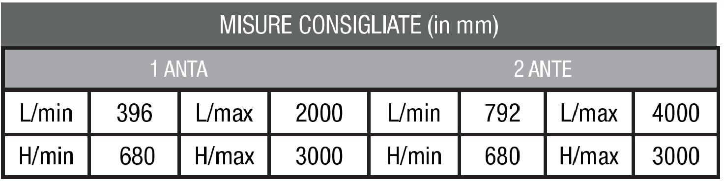 MINIMO FATTURABILE: 2 metri quadri (Apertura Singola) e 4 metri quadri ( Apertuta Double)