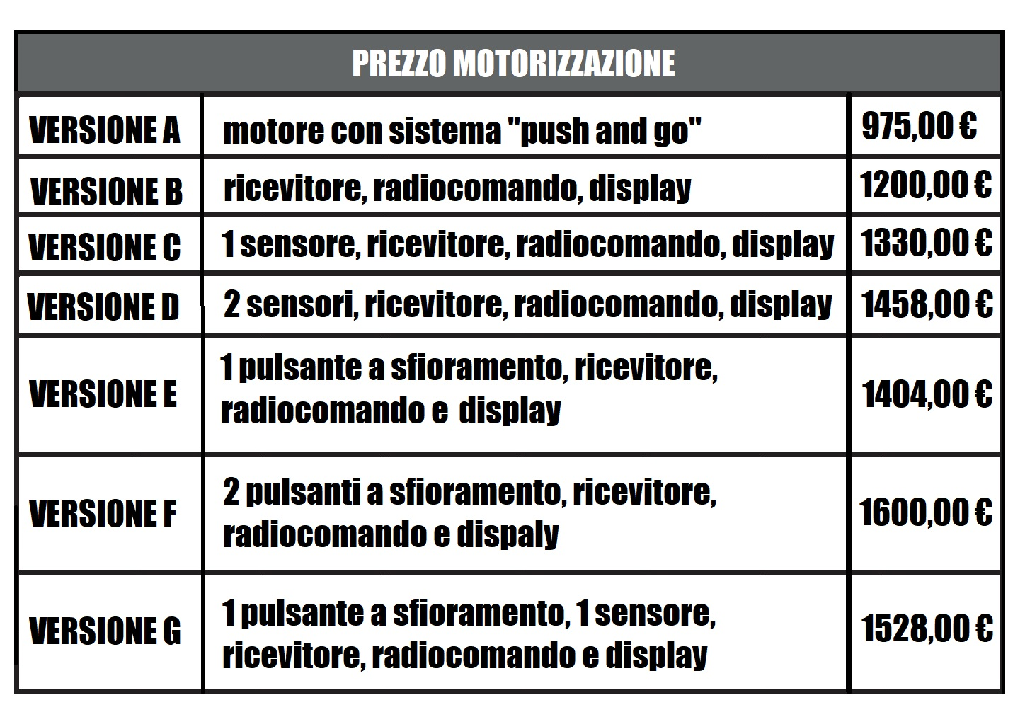 TEMPI DI CONSEGNA PER LA VERSIONE MOTORIZZATA: 20 giorni lavorativi