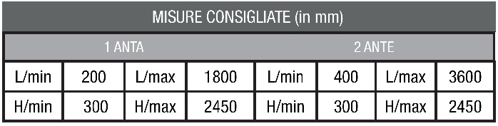 Apertura: Laterale (Singola), Centrale (Doppia)
