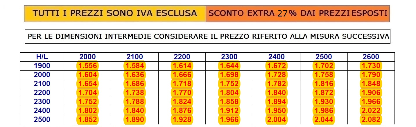 PER ULTERIORI MISURE CONSULTARE LA TABELLA SOTTO - COMPRESO TRASPORTO IN ITALIA- Per preventivi tecnici personalizzati siamo a tua disposizione, mail reparto: commerciale4@italfrom.com , Cellulare e/o Whatsapp (+39) 347.76.92.848 - Se richiesto SERVIZIO MONTAGGIO IN TUTTA ITALIA
