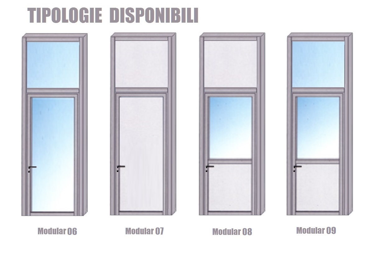 Telaio Porta: composto da cornice alluminio zeta 68 mm e zoccolo 146 mm.