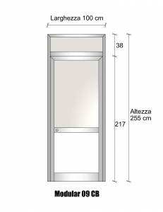 Modulo Parete Struttura con Porta in Alluminio con Vetro Opale, Pannello in Bachelite e Luce in Vetro Opale H2550xL1000 mm - ITALFROM® MODULAR09CB