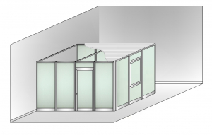 Box Modulare in Alluminio Composto da 9 Moduli in Vetro Satinato, un ModuloFinestra e un Modulo Porta in Vetro Satinato e Copertura con Perline 4 x 3 m H2550 mm - ITALFROM® BOX05S