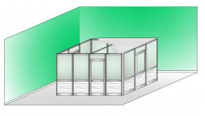Box Modulare in Alluminio Composto da 11 Moduli in Vetro Satinato e Perline, due Moduli Finestra in Vetro Satinato e Perline, un Modulo Porta in Vetro Satinato e Perline e Copertura con Perline 4 x 3 m H2550 mm - ITALFROM® BOX06SP