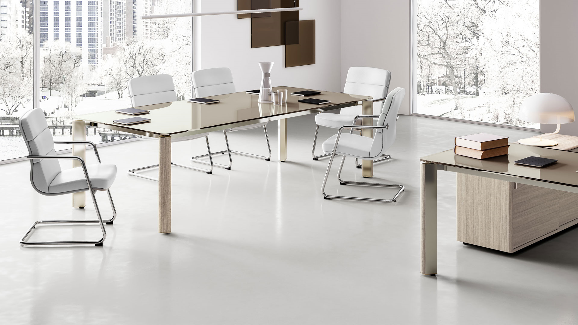 Caesar, il prodotto di Italfrom dalle forme morbide, organiche, dalle linee essenziali che comunicano leggerezza ed eleganza. Un programma completo di scrivanie, tavoli da riunione, da salotto, mobili contenitori ed armadi, per una ambiente direzionale raffinato e moderno.