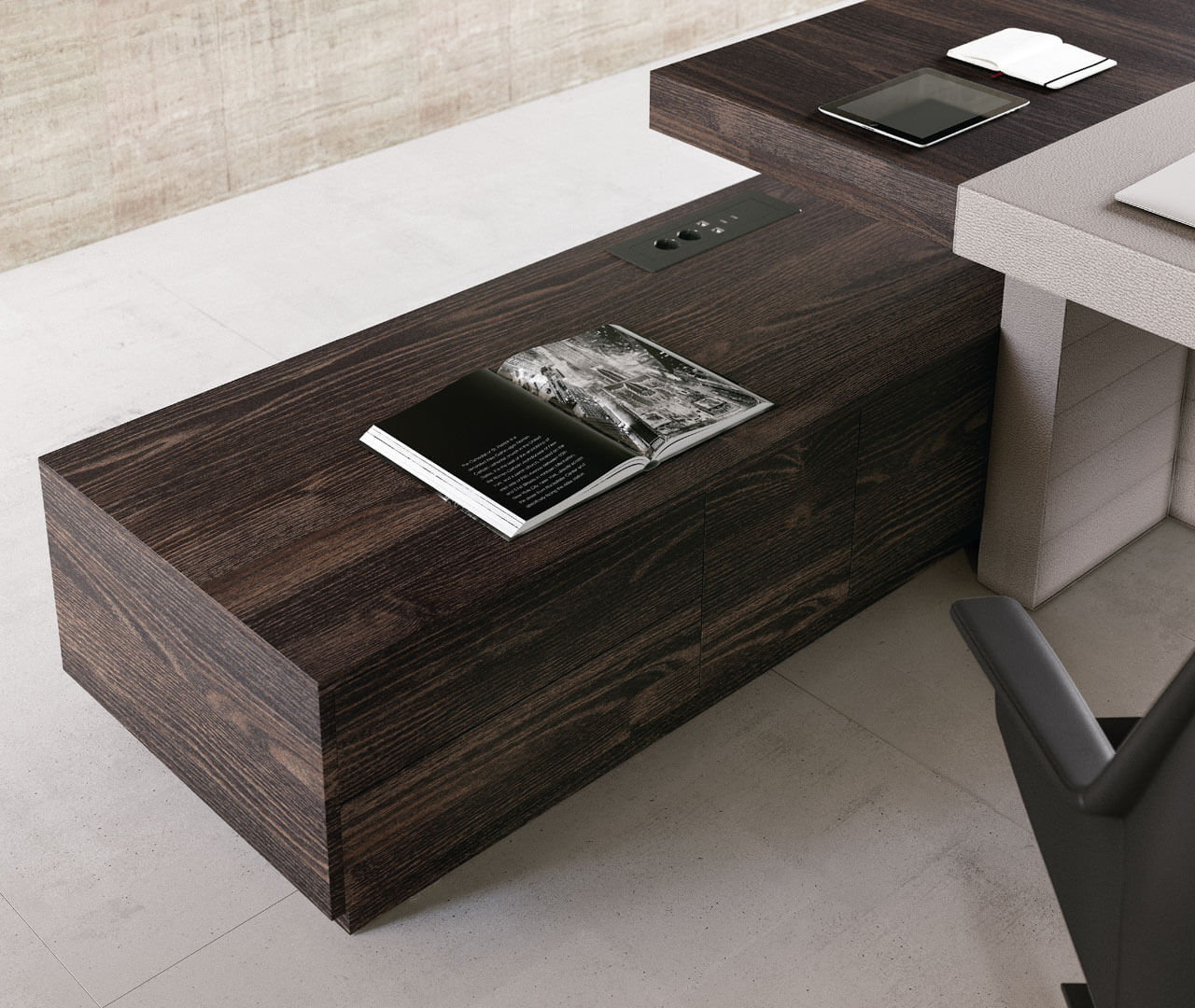 Arej Italfrom è un gioco di elementi verticali e orizzontali. Arej è concretezza, è scultura industrializzata. La forza del progetto è data dai piani ad alto spessore, dagli incastri materici fra i piani, pannelli verticali e aggetti orizzontali. La scrivania è disponibile in versione sinistra e destra. Ad essa si accosta un allungo dalle forme monolitiche che combina un design emozionale ad una corretta funzionalità. I mobili non sono concepiti come composizioni fisse ma sono elementi svincolati fra loro.
