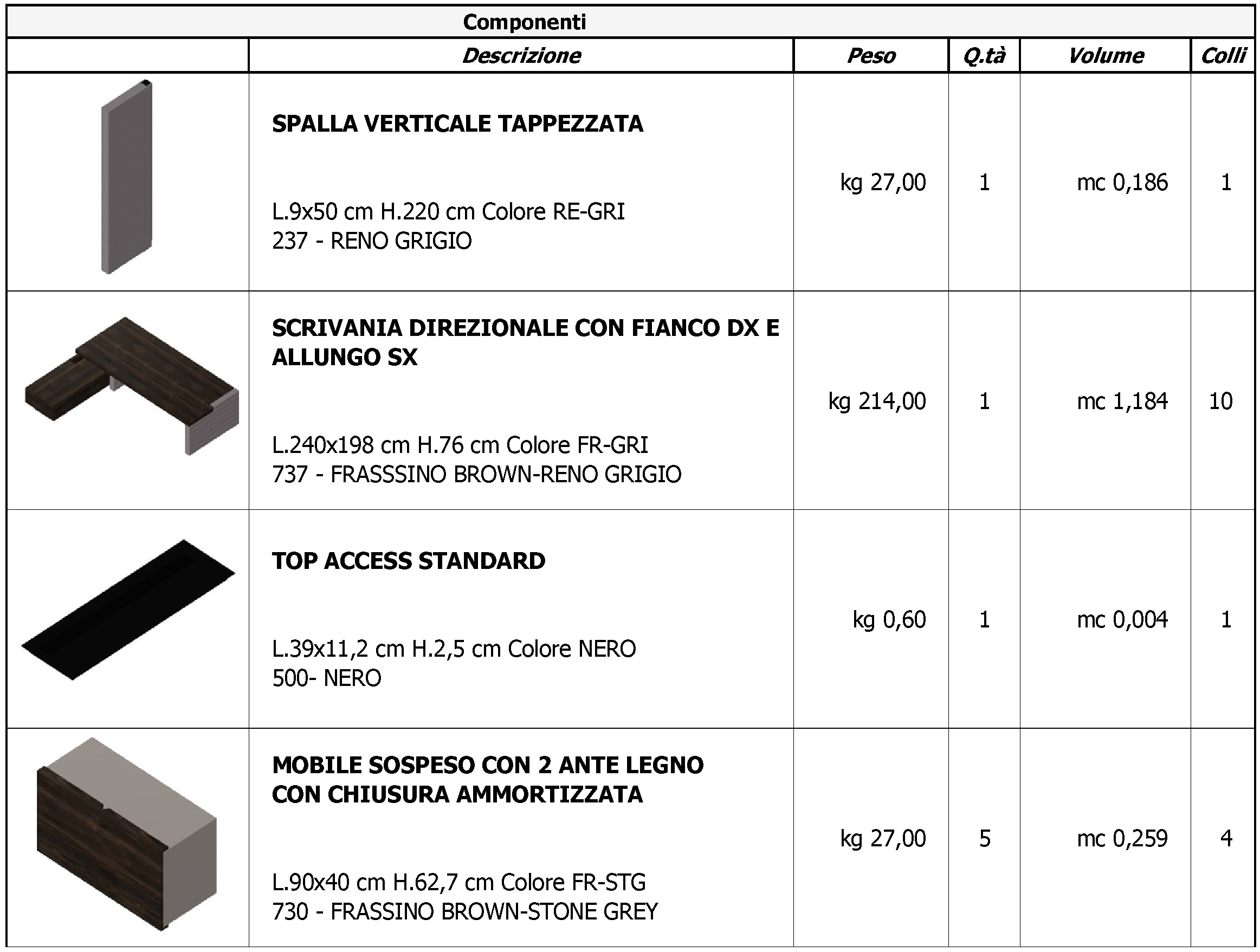 • n.1 - Scrivania direzionale con fianco dx e allungo sx