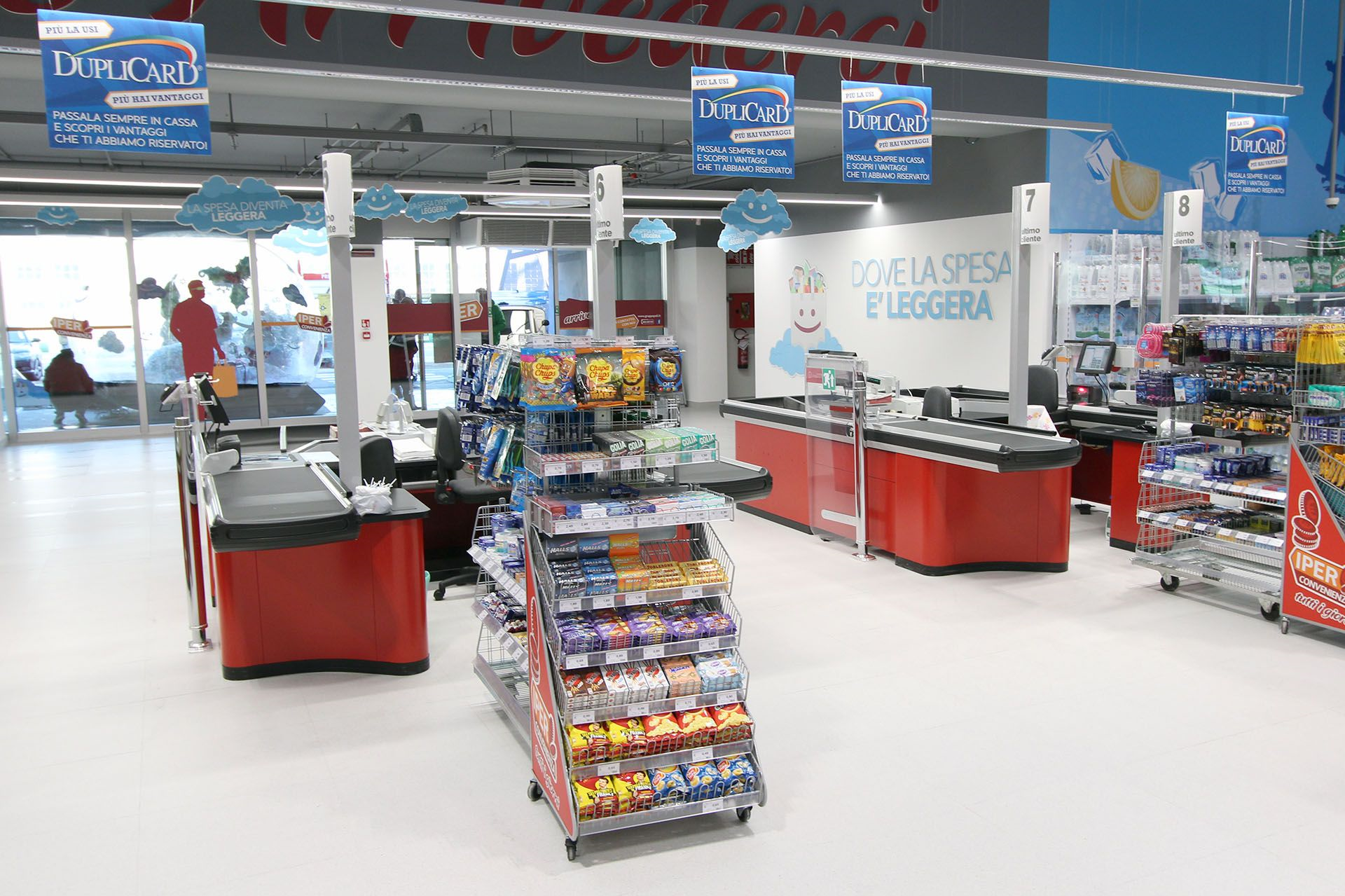 Banco cassa tradizionale adeguato per dimensione e funzione a tutte le aree vendita dal Superette o minimercato (superficie di vendita tra i 100 ed i 399 m²) all'Ipermercato (superficie di vendita superiore ai 2500 m²). L'ampiezza della vasca posteriore permette l'insacchettamento della merce a due clienti contemporaneamente ed offre quindi un adeguato servizio pur contenendo l'ingombro totale. La parte centrale - da 600 mm - permette l'alloggiamento dello scanner e del cassetto portamonete ribaltabile consentendo all'operatore di lavorare in posizione ergonomica e frontale rispetto al cliente.