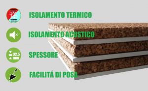 PANNELLO ACCOPPIATO CARTONGESSO E SUGHERO NATURALE "BIONDO" PER ISOLAMENTO TERMICO E ACUSTICO - SPESSORE 32,5 mm