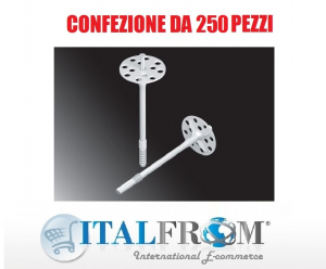 Tassello in Polipropilene Additivato - Diam. 10 mm - Lung. 120 mm per Ancorare Pannelli Isolanti - Confezione da 250 Pz