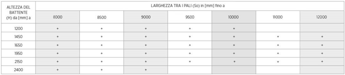 N.B. le misure si intendono in mm e sono l'altezza dell'anta e la Lunghezza tra i pali (luce netta).