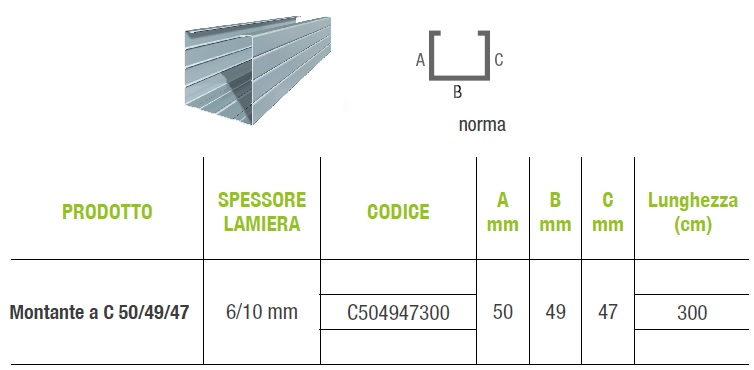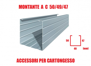 MONTANTE A C 50/49/47- PROFILO PER CARTONGESSO - Lunghezza Barra 300 cm -