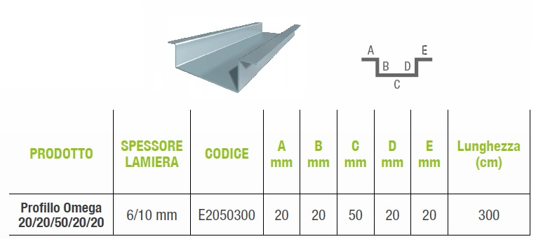 PROFILO AD OMEGA 20/20/50/20/20 - PROFILO PER CARTONGESSO - Lunghezza Barra 300 cm -