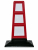 base nera, lamina verniciata rossa, inserti rifrangenti bianchi.
