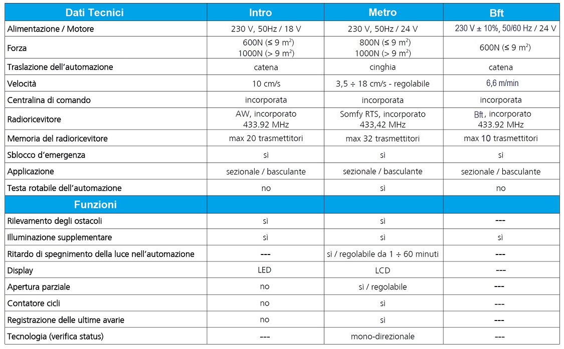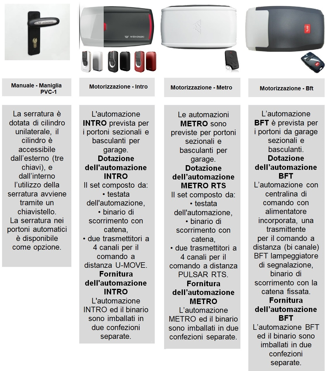 Tipologia di Serratura e Motorizzazioni a Scelta dal menù a tendina sopra