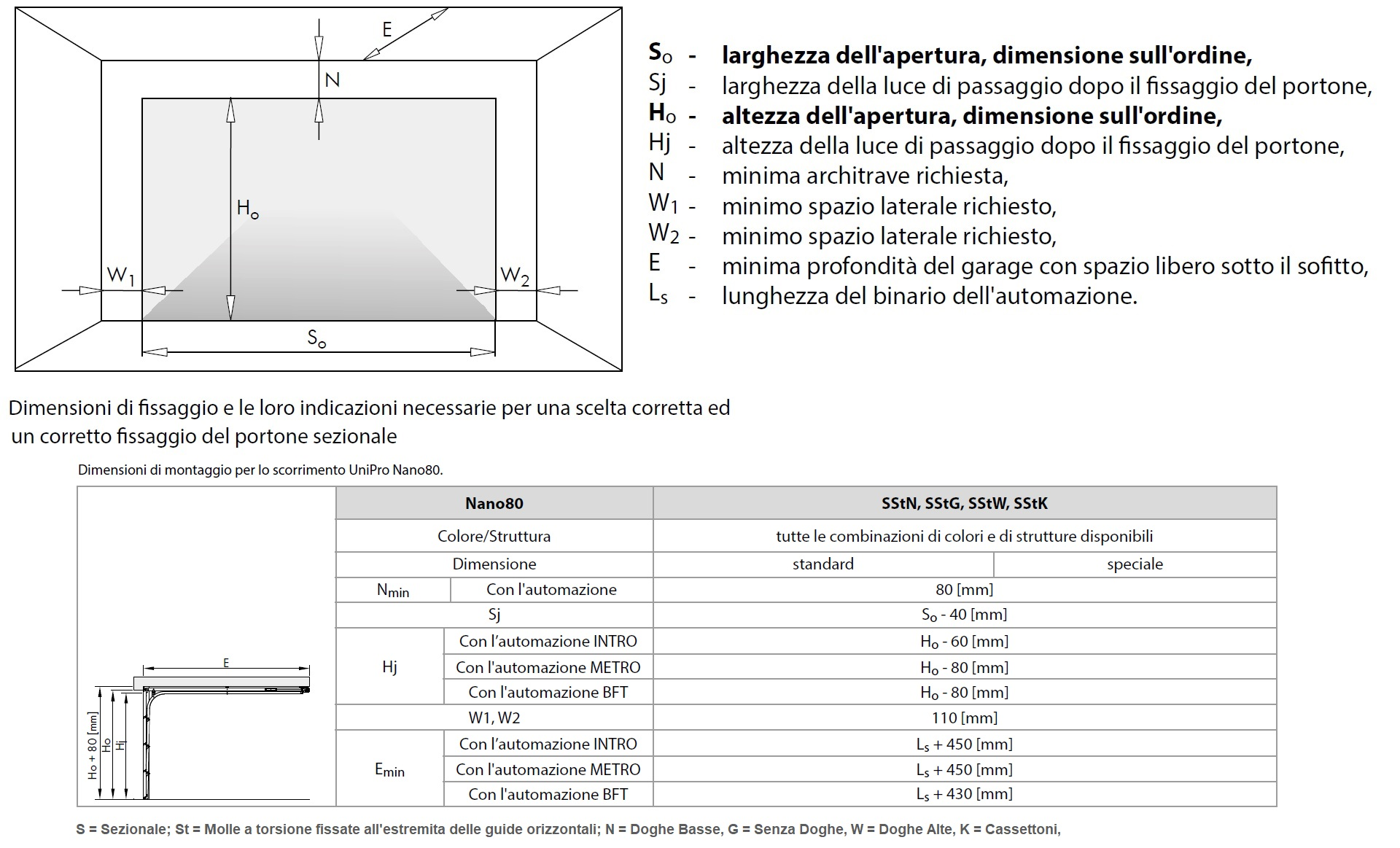 • So = 1500 [mm] e Ho = 1700 [mm] - portoni sezionali a doghe basse