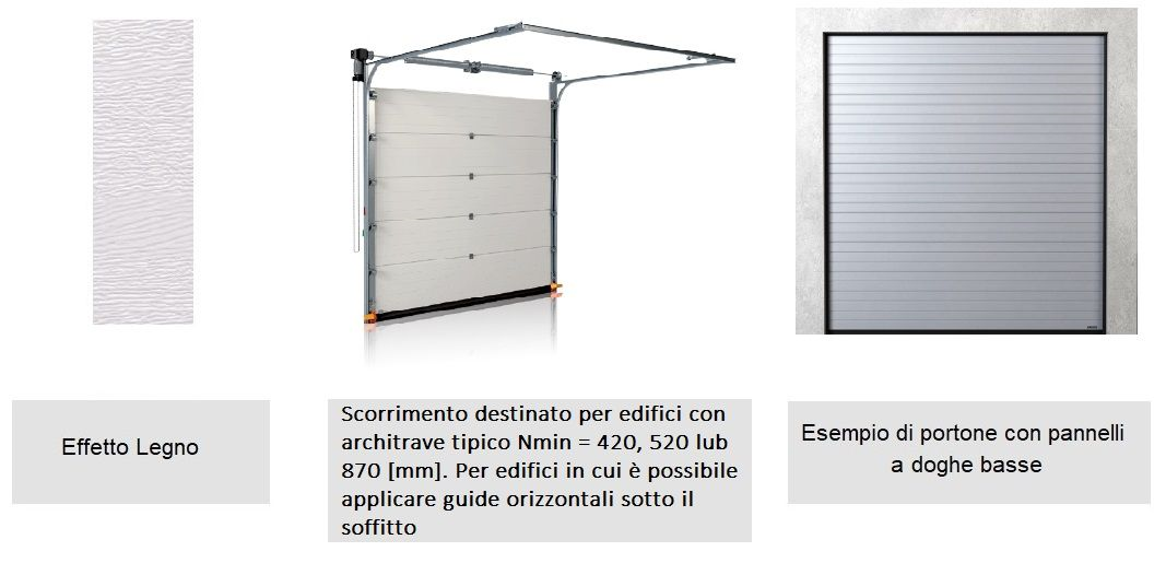 • Il portone sezionale è montato oltre luce e si apre verso l'alto e non occupa spazio durante il movimento.
