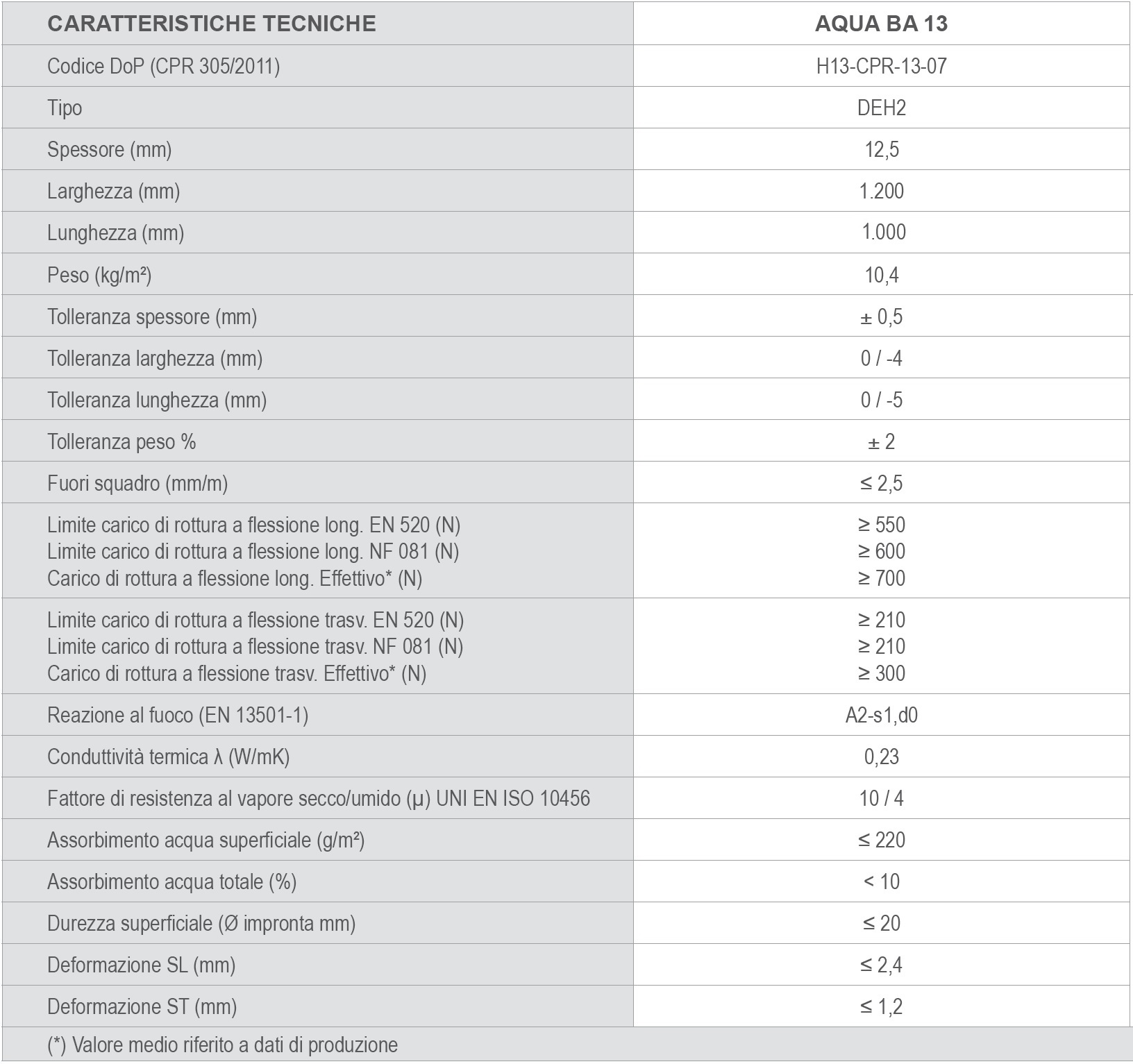 CARATTERISTICHE TECNICHE Le lastre Gypsotech AQUA, prodotte secondo la normativa EN 520, sono in classe europea di reazione al fuoco A2, s1 - d0.