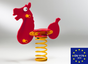 Questa variante indica il gioco a molla completo. Include la base per il fissaggio nel terreno tramite fondazione (art. 116 del listino), la molla con diametro 180mm ed altezza 360mm, l'intera sagoma e tutta la viteria necessaria per il montaggio. Questo tipo di molla è solitamente usata in scuole, asili, giardini privati o parchi dove le strutture gioco sono supervisionate da genitori o insegnanti.