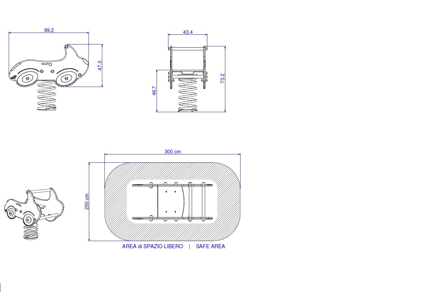 Questo tipo di molla è solitamente usata per aree pubbliche o parchi dove le strutture gioco non sono supervisionate.La viteria per il fissaggio a terra non viene fornita. Essa dipende dalla tipologia di superficie e viene solitamente scelta dall'installatore.
