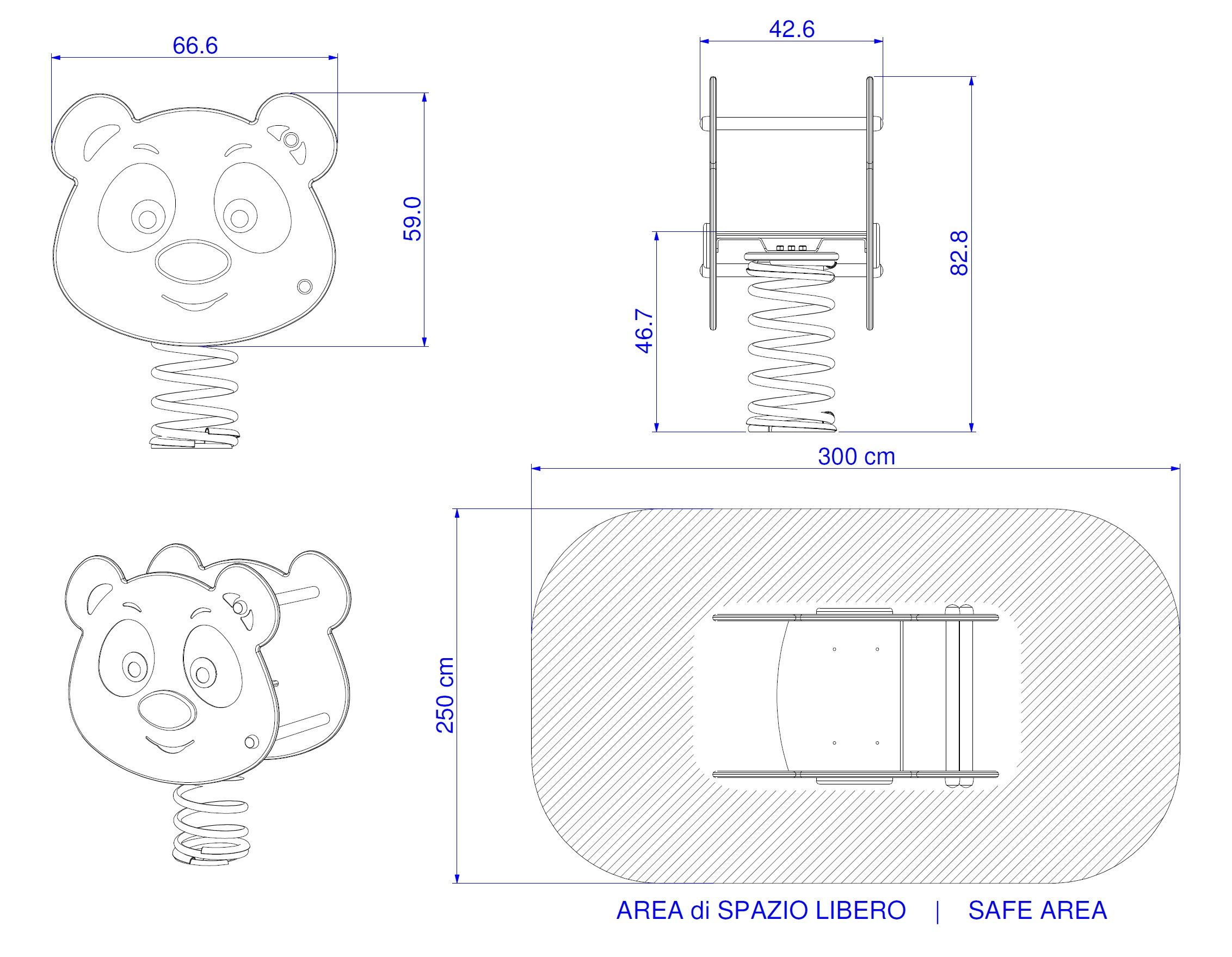 Questo tipo di molla è solitamente usata per aree pubbliche o parchi dove le strutture gioco non sono supervisionate.La viteria per il fissaggio a terra non viene fornita. Essa dipende dalla tipologia di superficie e viene solitamente scelta dall'installatore.