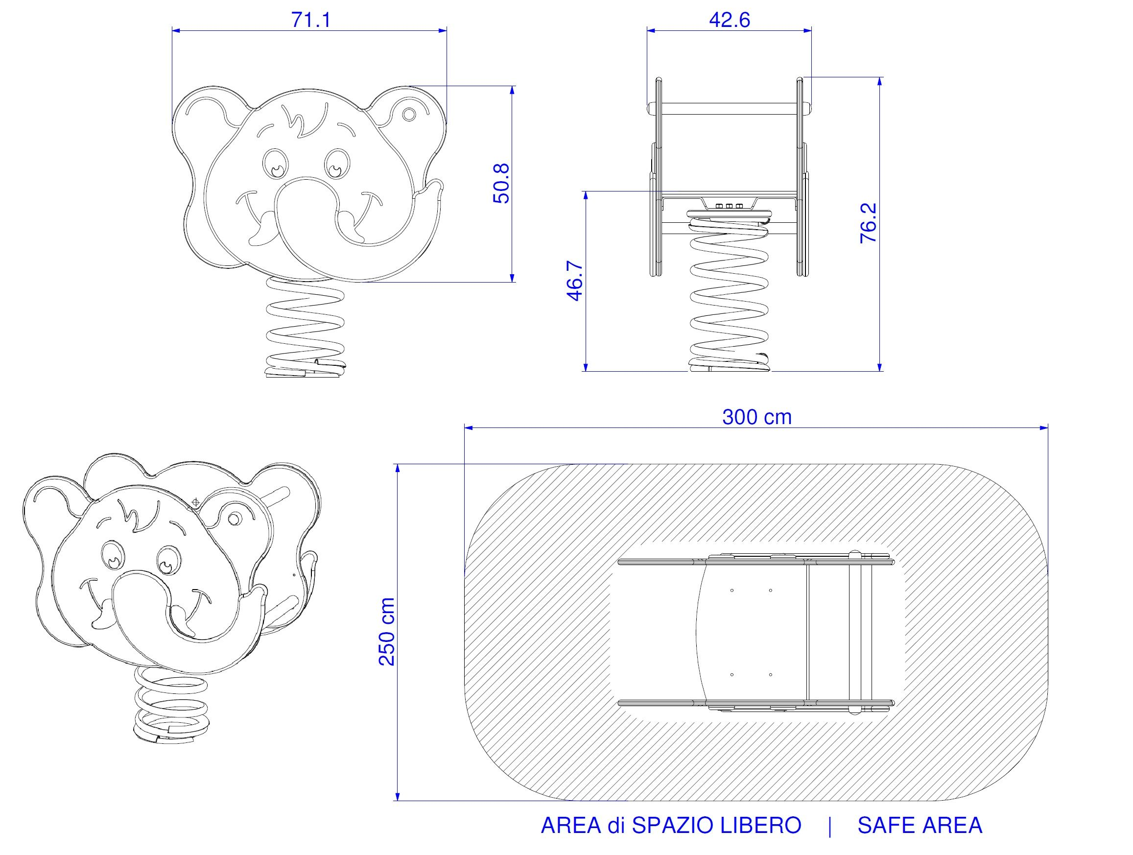 Questo tipo di molla è solitamente usata per aree pubbliche o parchi dove le strutture gioco non sono supervisionate.La viteria per il fissaggio a terra non viene fornita. Essa dipende dalla tipologia di superficie e viene solitamente scelta dall'installatore.