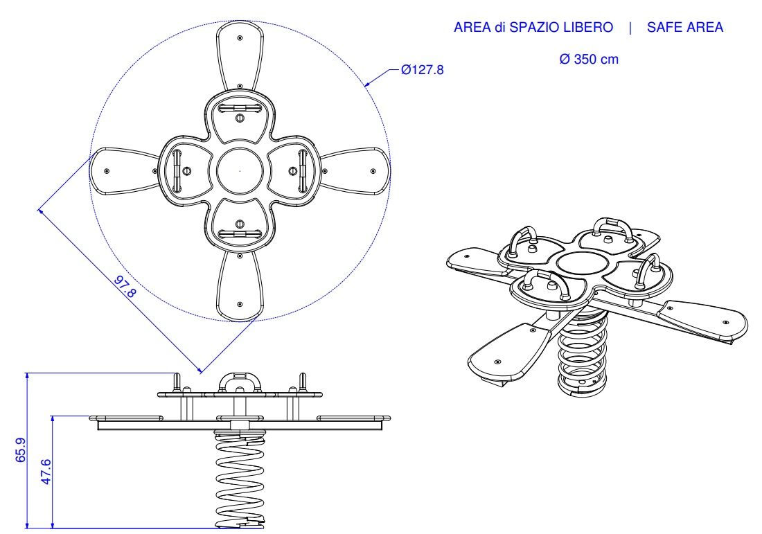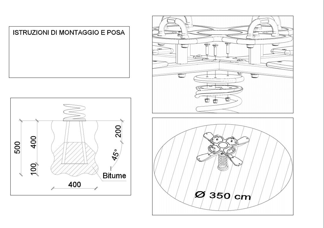 Questo tipo di molla è solitamente usata per aree pubbliche o parchi dove le strutture gioco non sono supervisionate.La viteria per il fissaggio a terra non viene fornita. Essa dipende dalla tipologia di superficie e viene solitamente scelta dall'installatore.