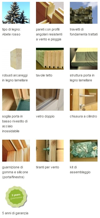 Per proteggere e prolungare la vita della casetta in legno è necessaria una corretta manutenzione. Tutte le casette in legno sono fornite grezze, è necessario proteggerle e decorarle con l’uso di prodotti specifici, come impregnanti e antitarlo.