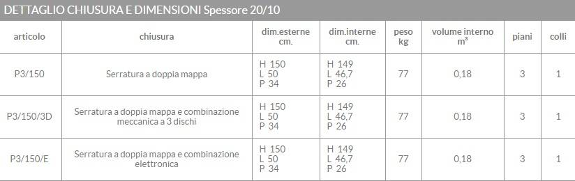 CARATTERISTICHE TECNICHE Gli armadi di sicurezza monoblocco vengono realizzati in lamiera di acciaio speciale di 1a scelta S235JR, dello spessore di 2 mm. Gli sportelli sono scatolati con cerniere interne e bordo antistrappo apribili a 180°. Hanno un sistema di chiusura con cremagliera a 3 espansioni comandate da maniglia che aziona 3 catenacci orizzontali e 2 verticali di diam. 22. Riferma con serratura di sicurezza a doppia mappa. Per tutti i modelli il sistema può essere integrato da combinazione numerica a 3 dischi coassiali formante un milione di combinazioni,oppure da combinazione elettronica.