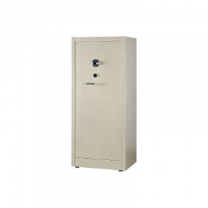 CARATTERISTICHE TECNICHEGrazie alla loro struttura, realizzata con una doppia parete all'interno della quale è compresso un materiale ad alto potere isolante, garantiscono un'efficiente protezione agli sbalzi termici provocati da piccoli incendi o esposizione a fonti di calore. L’armadio è realizzato in lamiera di acciaio speciale di 1a scelta S235JR, dello spessore di mm.3 ed internamente, ad eccezione della parete posteriore, abbiamo una pannellatura in lamiera di acciaio dello spessore di mm.1 che rende invisibili tutti i bulloni di montaggio. Le cerniere degli sportelli sono predisposte internamente allo sportello, rendendole non accessibili allo scasso (ns. brevetto n. 205519 del 1983). Il sistema di chiusura è composto da cremagliera a triplice espansione azionante 4 catenacci orizzontali, uno verticale superiore ed uno verticale inferiore diam. mm. 22 e 2 barre laterali di incastro fiancata-sportello. Il sistema è azionato da una maniglia frizionata che in caso di forzatura oltre certi limiti slitta evitando di rovinare il sistema stesso. Riferma realizzata con serratura a chiave femmina a doppia mappa a 8 leve con chiave non estraibile ad armadio aperto. Il sistema può essere integrato da combinazione numerica a 3 dischi coassiali formante un milione di combinazioni, da combinazione elettronica, oppure da combinazione elettronica autoalimentata "Mas Hamilton".Le suddette serrature sono protette da una piastra di acciaio al manganese imperforabile al trapano.