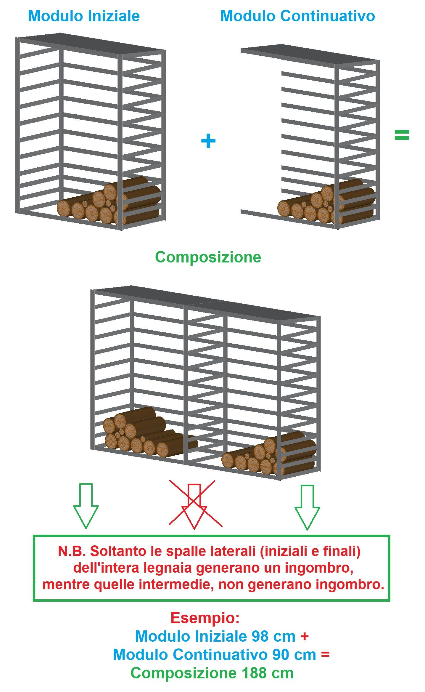 Legnaia Modulare ITALFROM® in Acciaio Zincato Autoportante - Modulo Continuativo - Varie Misure a Scelta