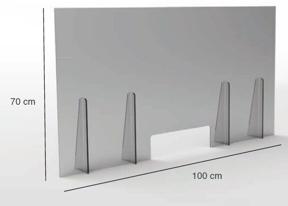 Barriera Anti-Droplet in Plexiglass Autoportante con Piedini in Plexiglass per Prevenzione Covid-19 - 100x70 cm - Italfrom