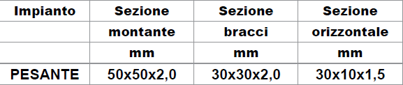Sistema utilizzato come palo intermedio per la coltivazione di melograno, mele e frutteti costituito da un montante di altezza 200 cm con sezione 40x40 mm oppure 50x50 mm, da due bracci di lunghezza 1750 mm con sezione 25x25 mm e da un rinforzo orizzontale con sezione 10x30 mm. Realizzato in ferro prezincato.