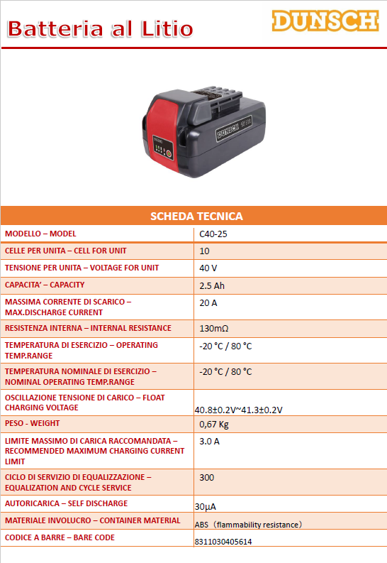 -> Batteria a Litio Dunsch 40V 2.5AH