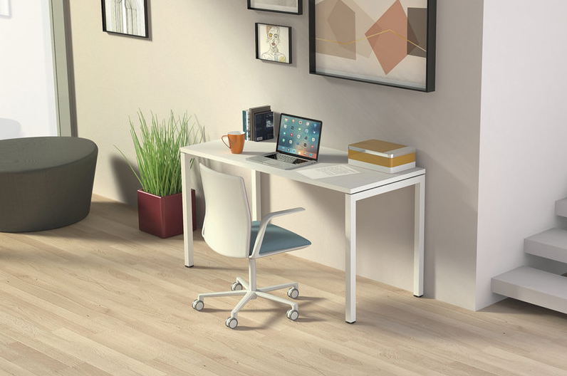 Piani scrivania sp. 22 mm, con allungamento ad angolo in melaminico antibatterico , antigraffio, antiriflesso. Bordo dei piani scrivania e ritorno in abs in spessore.