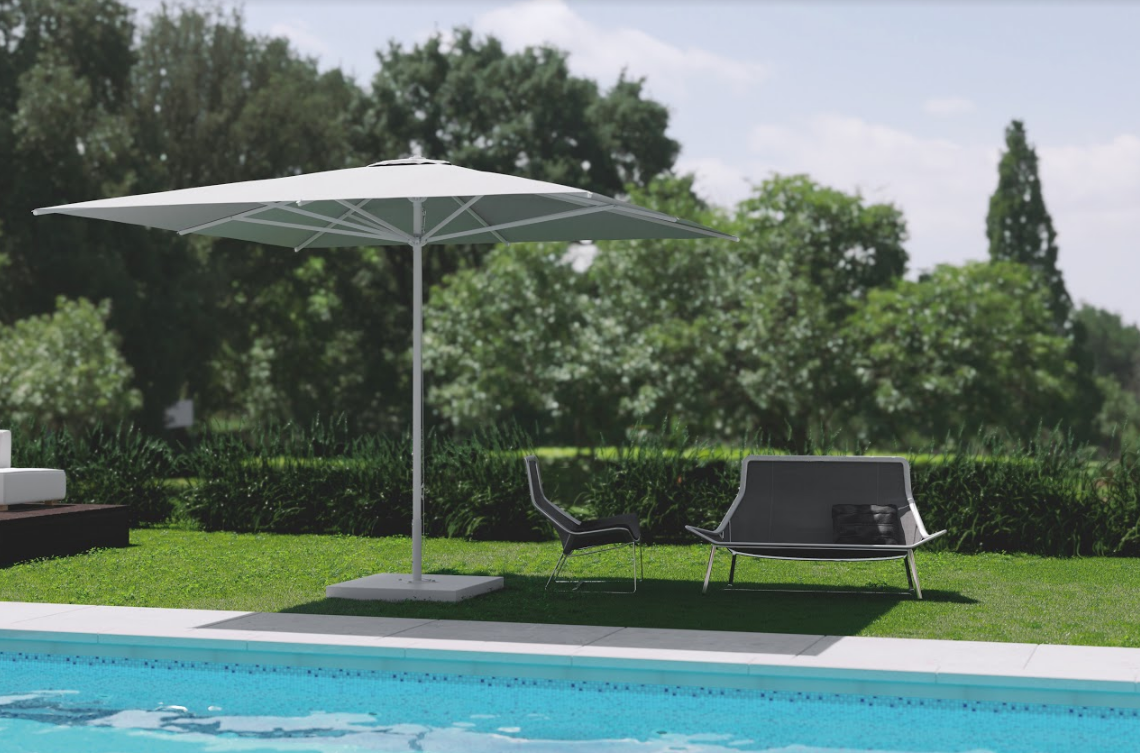 • Chiusura telescopica sopra i tavoli • Possibilità di fissaggio al suolo • Ombrellone standard fornito con pendente • Stecche intercambiabili • Parti metalliche prima zincate, poi verniciate • Inclusa Base + Carter Copribase in acciaio zincato verniciato