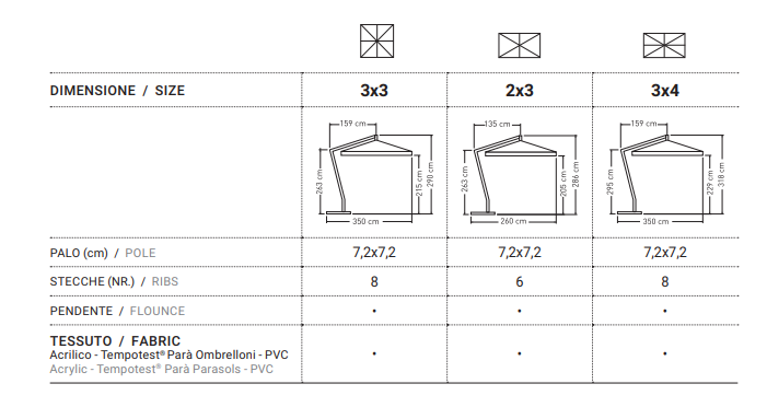 SU RICHIESTA E' POSSIBILE AVERE IL TESSUTO IN COPERTURA MODELLO TEMPOTEST PARA' O PVC. CONTATTATECI PER MAGGIORI INFO E PREVENTIVI.