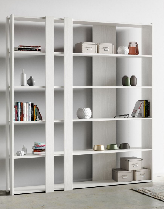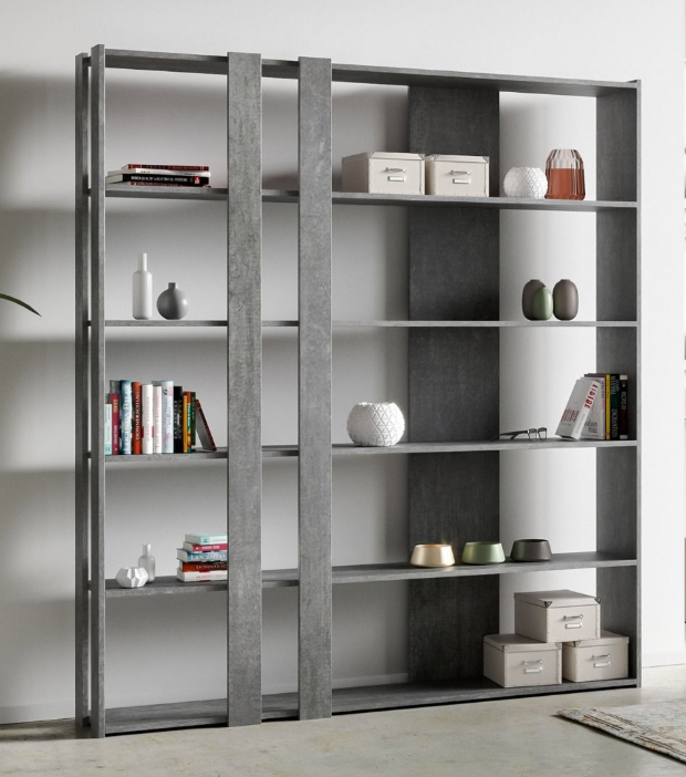 Libreria Kato CLa libreria Kato C viene proposta nella versione con 2 fasce nella parte anteriore, una nella parte posteriore e i fianchi di contenimento; da un lato il fianco è intero, nell'altro lato il fianco è composto da due fasce. Piani in microparticelle di legno disponibile nei colori bianco frassino noce e cemento. Realizzata interamente in Italia mediante l'utilizzo di materiali 100% italiani.