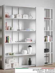 Libreria Kato DLa libreria Kato D viene proposta nella versione con 3 fasce nella parte lunga, una fascia anteriore più spessa e due fasce posteriori più sottili. I fianchi di contenimento sono 3, un fianco intero e nell'altro lato, due fasce laterali. La resistenza alla flessione è garantita. Piani in microparticelle di legno disponibile nei colori bianco frassino noce e cemento. Realizzata interamente in Italia mediante l'utilizzo di materiali 100% italiani.
