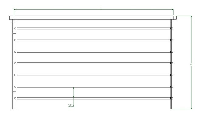 CONSEGNA 45/50 GIORNI LAVORATIVI - Pannello modulare incluso di piantana PRODOTTO ZINCATO E VERNICIATO CON POLVERI POLIESTERI POSSIBILITA' DI COLORI IN TUTTI I RAL STANDARD Potete richiedere preventivi per misure fuori standard Materiale su commissione, di tempi di consegna possono variare di 4/5 gg Caratteristiche:Gli elementi verticali della gamma Michigan sono collegati all’elemento orizzontale mediante saldatura. Dopo la fase dell’assemblaggio, i pannelli vengono interamente zincati ad immersione, caratteristica molto importante che dona al pannello una rigidità elevata è rappresentata dal corrente a C.IL PANNELLO VIENE FORNITO GIA ASSEMBLATO Rivestimento:Zincatura a caldo Bulloneria:Tutta la bulloneria è in acciaio zincato. Il collegamento tra piantana e pannelloavviene tramite bullone e dado a strappo zincato. Materiale:Acciaio zincato 20/10. n SCHEDA TECNICA: Paletto: Profilo piatto 50x8 mm zincato; Elemento orizzontale: Tubo superiore diam. 42 mm zincato, tubi inferiori da 18x1,2 mm zincati Sistema di asseblaggio: Bulloni in acciaio zincato M12x30 e inserti filettati zincati M12