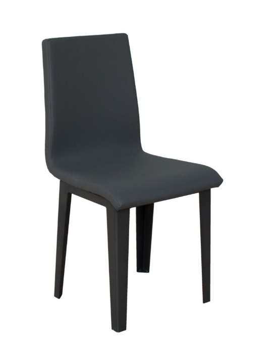 Sedia Armida, una sedia senza bracciolo, con gambe coniche in metallo verniciato antracite e seduta in legno rivestita in similpelle leggermente imbottita.