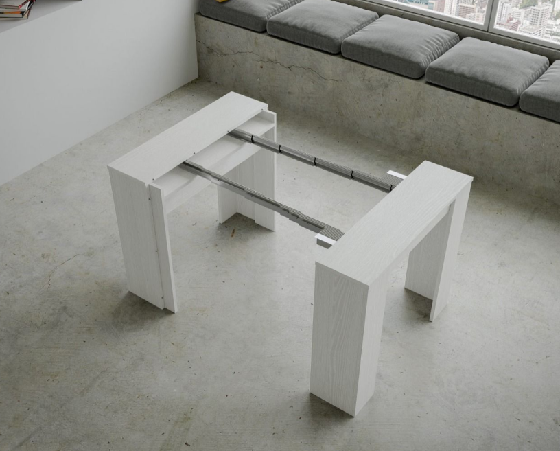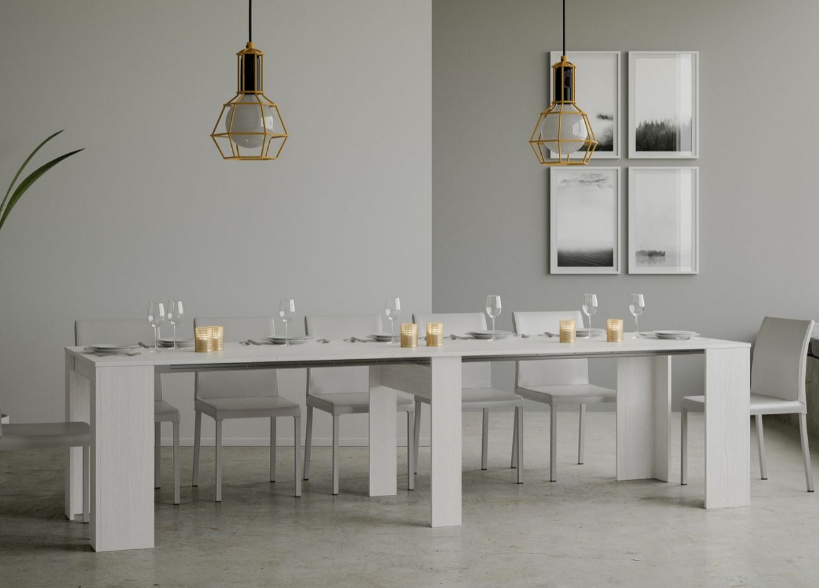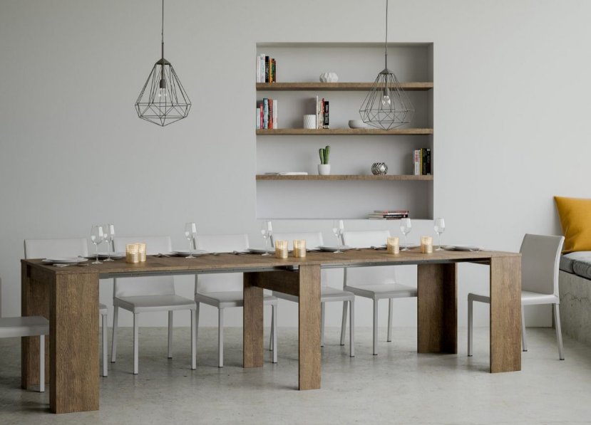 Piccola e compatta da chiusa, la consolle si trasforma in poche mosse in un pratico e spazioso tavolo da pranzo da 3,08 metri per le occasioni più importanti.