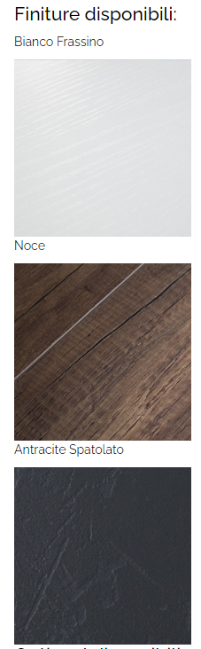 - Piano e allunghe sono in pannelli di nobilitato in essenza.